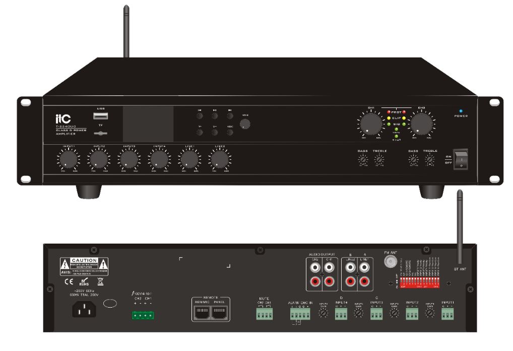 2-channel x 240w matrix amplifier for high-quality audio reinforcement systems at an affordable price. The UC series amplifiers provide 4ohm and 100V line outputs, and offer and multiple useful features, including Bluetooth receiver and USB media player, and each output channel has separate bass and treble control. Suitable for clubs and bars, stadiums, shopping centers and other venues and requirements for high quality, multi-channel power amplifiers.Matrix setup adjustable via the OLED screen and function buttons.
