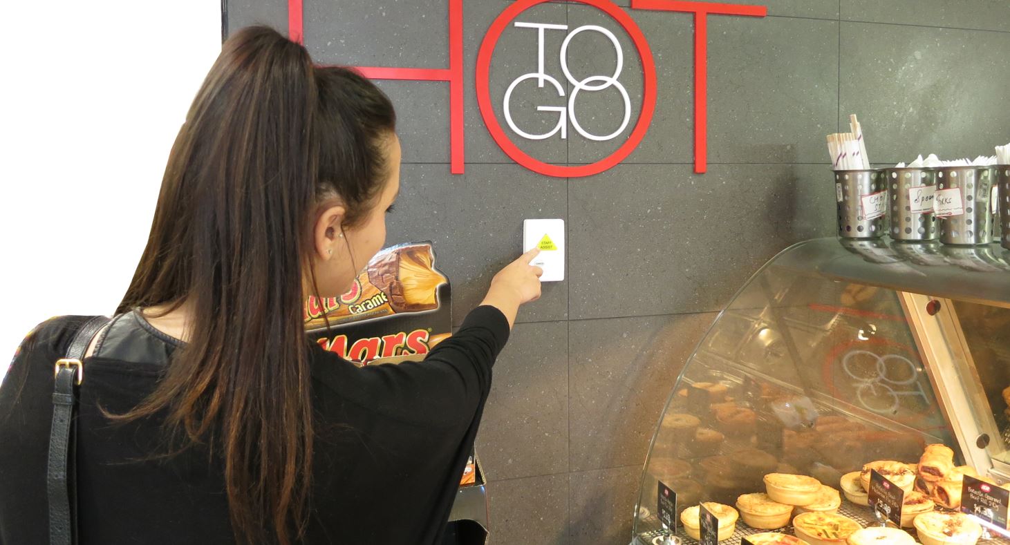 Wireless Play On Demand buttons (PODs) trigger a prerecorded message to play over the public address system. Buttons can be pre-set to play a message once only and then self cancel, or pre-set to latch, repeating the message every 15 seconds until manually cancelled.