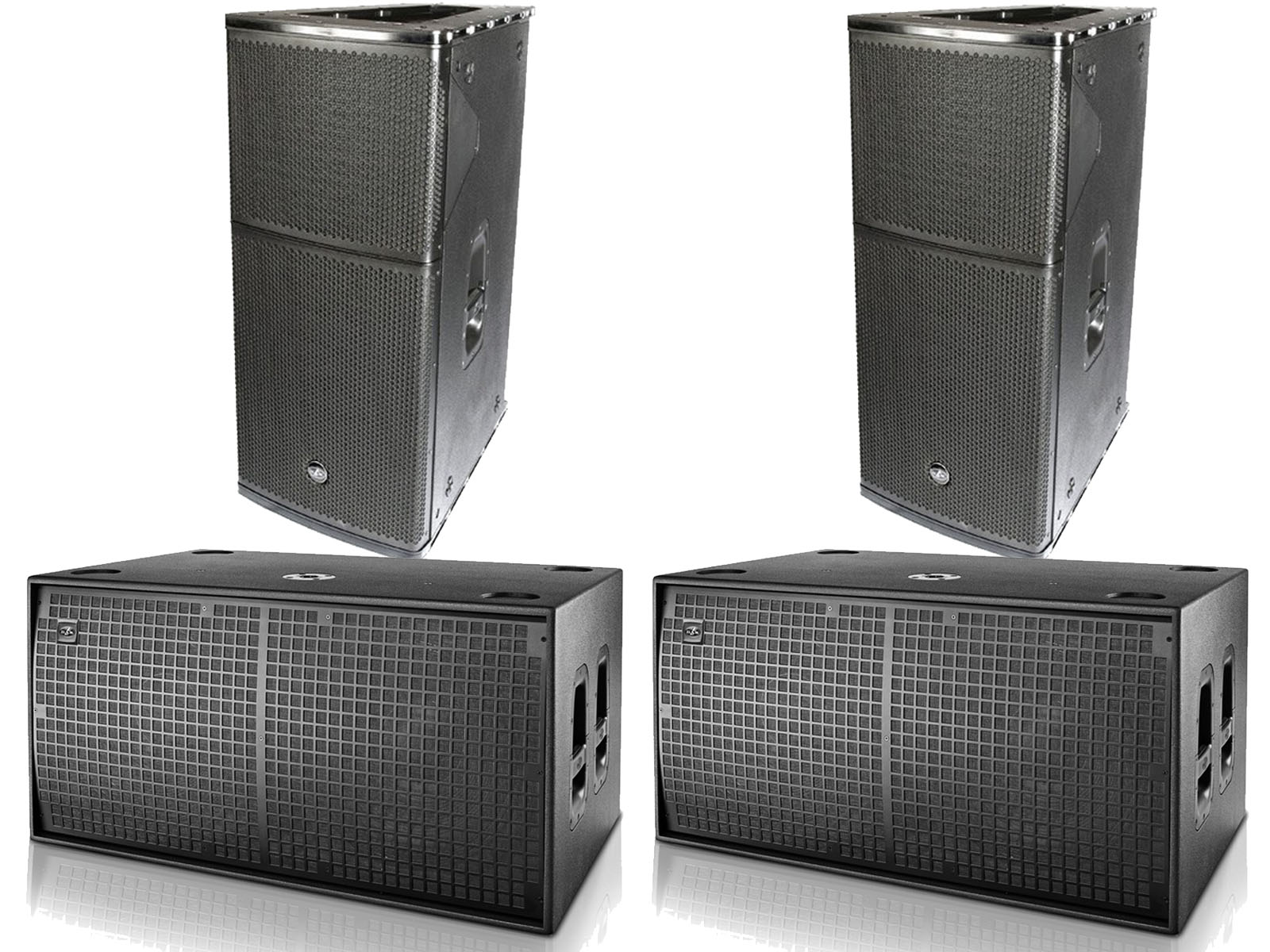 The package consists of a pair of the famous DAS Audio Convert 15A 2000w RMS Speakers (90 deg) (3 channel Class D Amps) , and four of the Acclaimed DAS Audio Avant-118A active subwoofers.