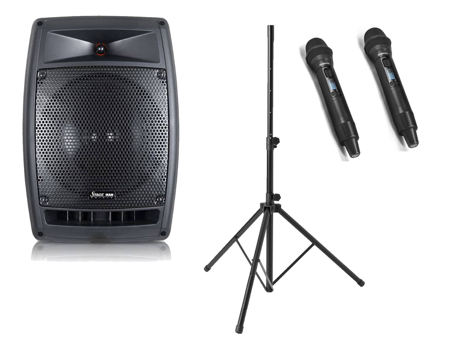 Hire the StagePro Portable PA System with Two Wireless Microphones and Speaker Stand